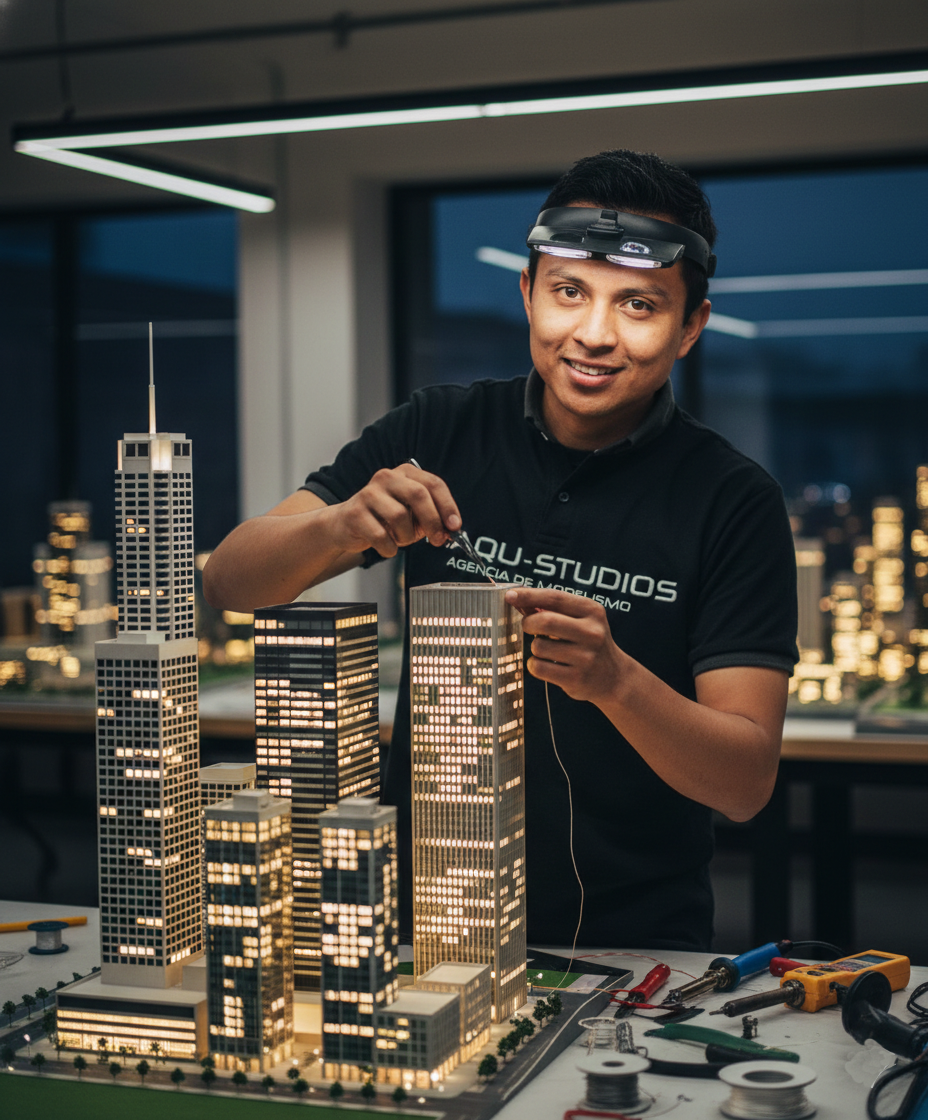 Técnico de iluminación: responsable de instalar y configurar el sistema de iluminación de las maquetas, para lograr un efecto realista y resaltar los detalles más importantes.